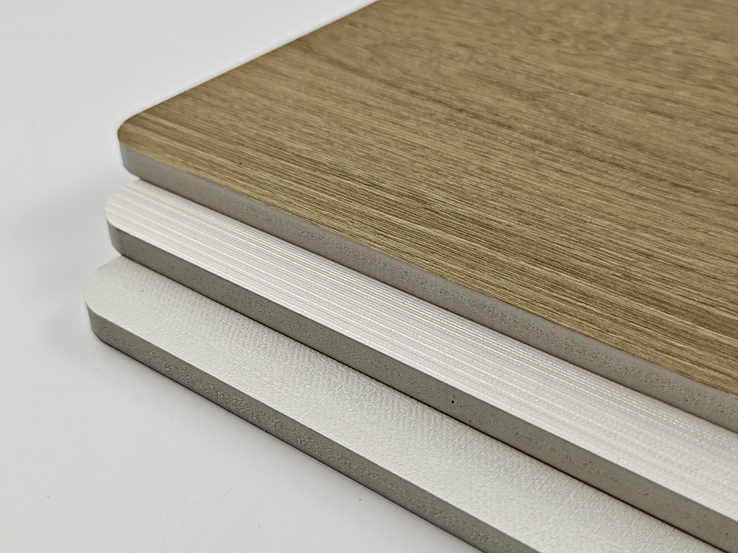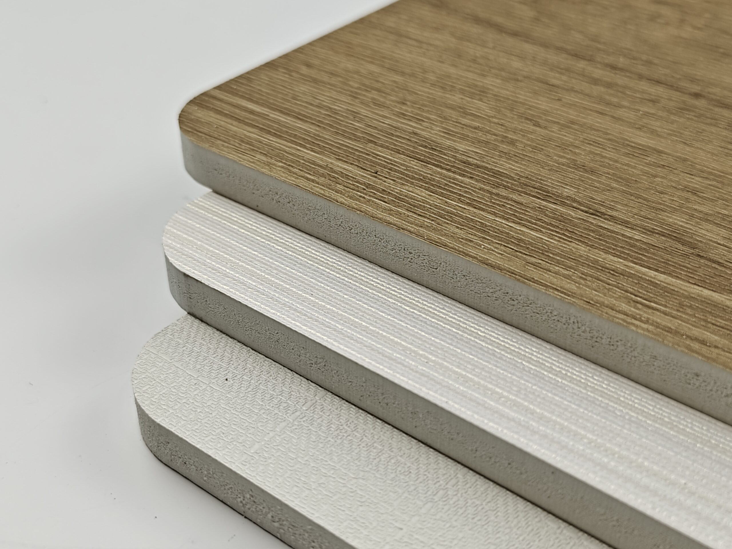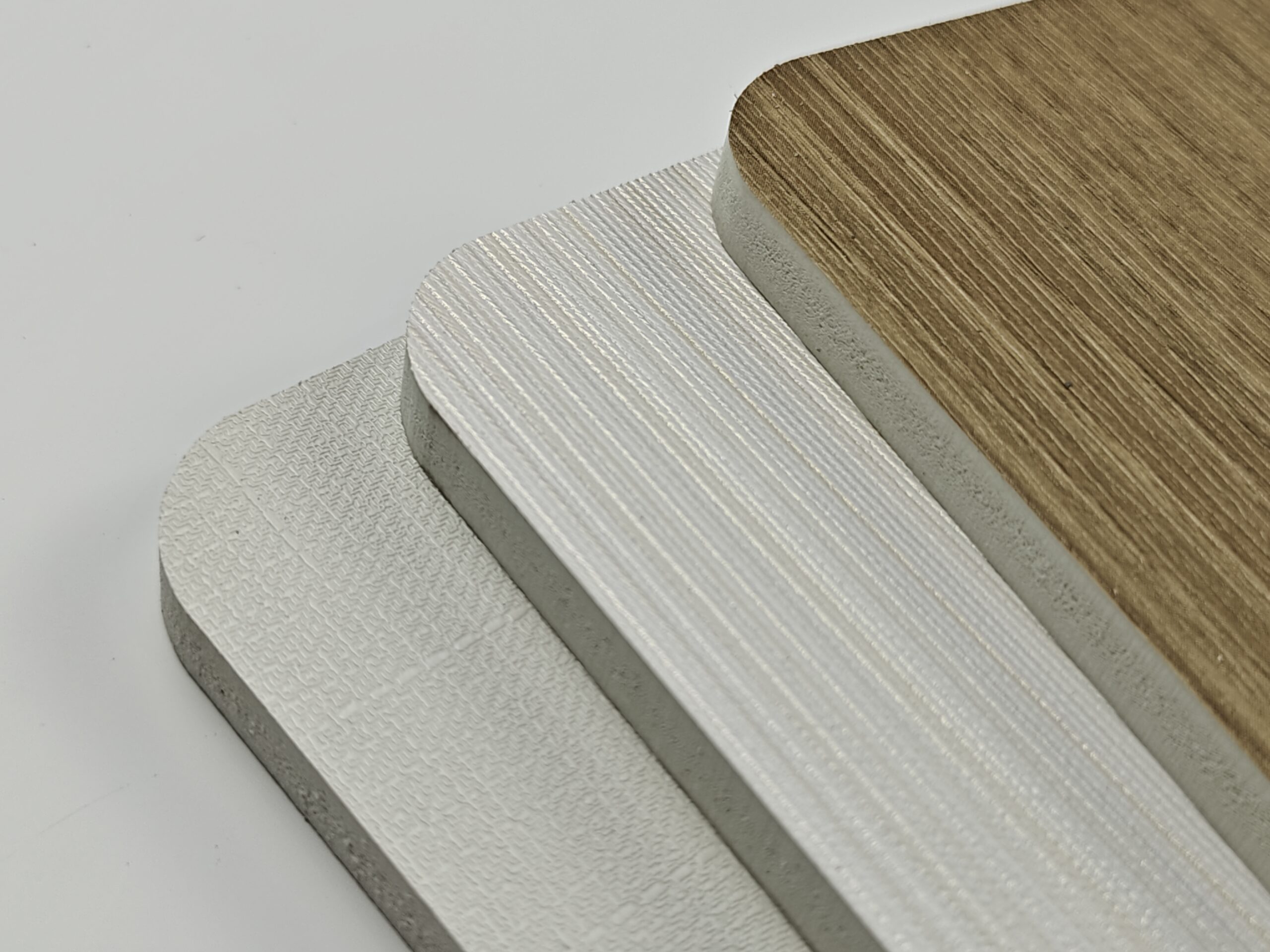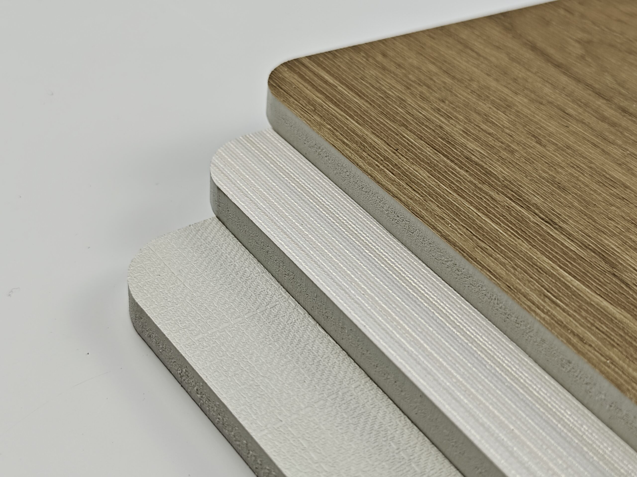 The second layer is the surface film layer, which uses special water-based PVC film, PP scratch-resistant film, and PET-G high-gloss film. It comes in a variety of colors and has exquisite and realistic textures.